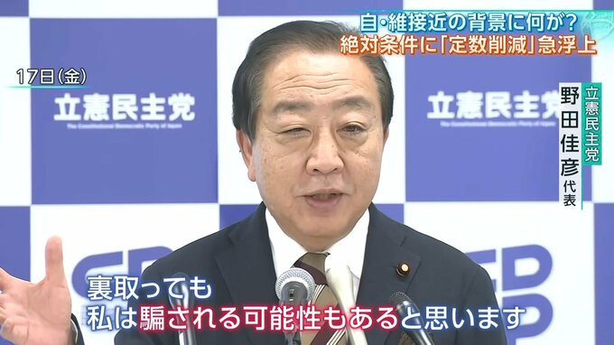立憲民主党の野田代表は総理だった2012年、定数削減と引き換えに解散に応じたことを引き合いにこう強調しました。