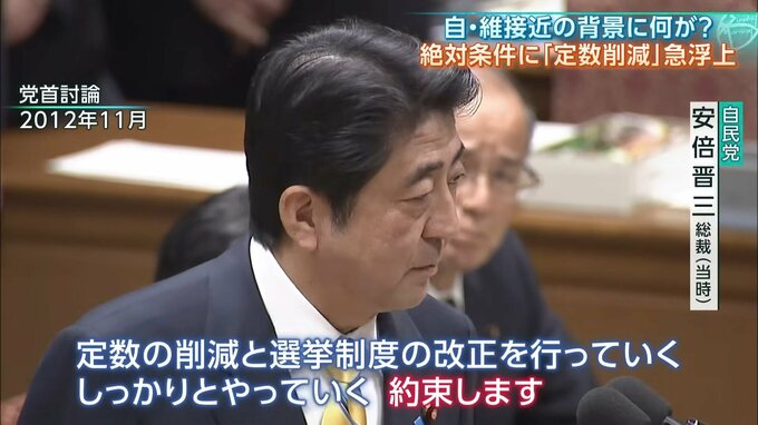 議員定数の削減を受け入れる方針を固めた自民党。20日、両党は合意文書に署名する方向で最終調整しています。