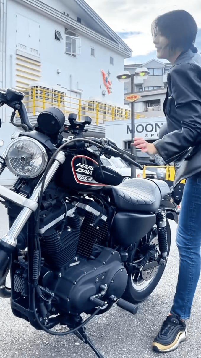 そして「愛車のHarley-Davidson XL883Rと♡」と、書き添えています。