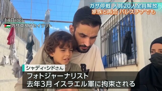妻と子どもを抱きしめるのは、2024年3月にガザ市のシファ病院で、イスラエル軍に拘束されたフォトジャーナリストのシャディ・シドさんです。