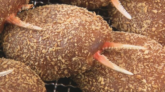 カニの爪が飛び出しているのは「かに尽くしのかにカレーパン」、境港で揚がったベニズワイガニを具材に使ったカレーパンは、カレーパングランプリ2025の西日本焼きカレーパン部門で見事金賞を受賞しました。