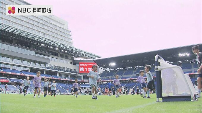 19日、長崎市のピーススタジアムでは、日本サッカー協会などが全国で開いているイベント「JFAユニクロサッカーキッズ」が開催されました。