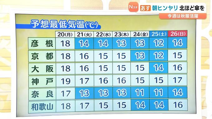 10月20日(月)の近畿地方は、朝晩ヒンヤリ。今夜は寝冷えに注意が必要です。今週はこの時期らしい気温となり、秋服が活躍しそうです。 20日(月)の近畿地方は北から冷たい空気が流れ込む影響で、北部は雲…