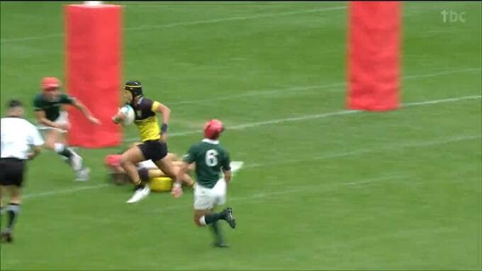 試合は、前半10分。育英が、スピードとパワーを生かし先制のトライ!その後も持ち味のボールを大きく動かすラグビーでリードを広げます。