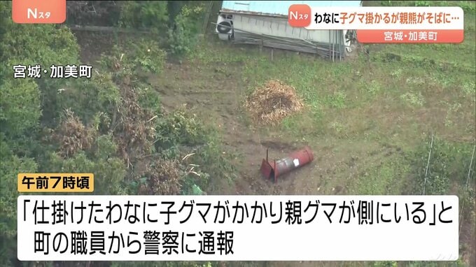きょうも各地でクマの出没が相次ぎました。宮城県加美町では、きょう午前7時ごろ、藪のなかで「仕掛けたわなに子グマがかかり、親グマが側にいる」と町の職員から警察に通報がありました。親グマは体長およそ1メー…