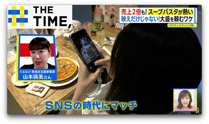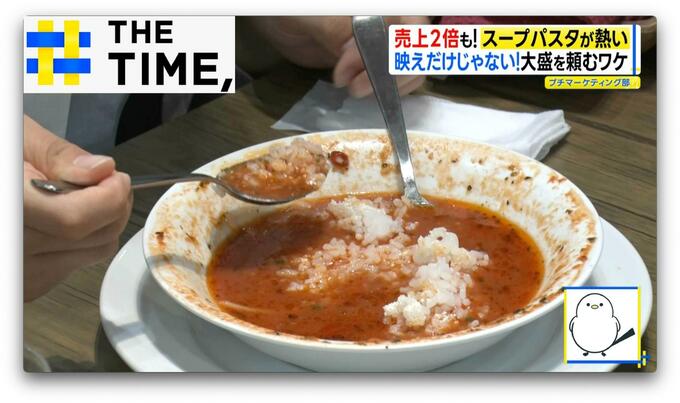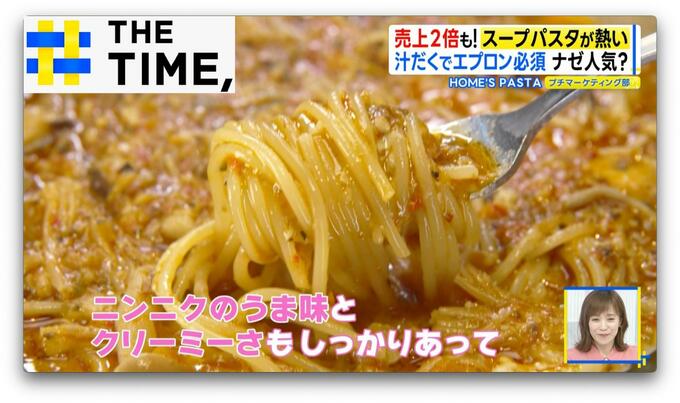 「下のお皿にスープがこぼれるぐらい“たっぷり入ったもの”が話題になっている。“SNSの時代にマッチ”していてインスタグラムで「#スープパスタ」が約7万件投稿され増えている」
