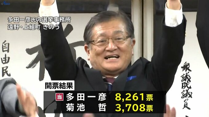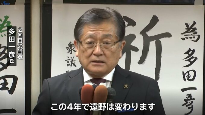 任期満了に伴う遠野市長選挙は、19日投票が行われ、即日開票の結果、現職の多田一彦氏が新人との一騎打ちを制して再選を果たしました。
