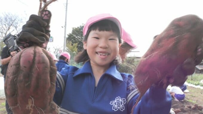 山梨市の小学校で児童が、地元のNPOの協力を受けて育てたサツマイモを収穫しました。サツマイモの収穫を体験したのは山梨市にある日下部小学校の2年生およそ50人です。