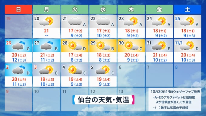 仙台や新潟は、最低気温が一桁が当たり前になります。