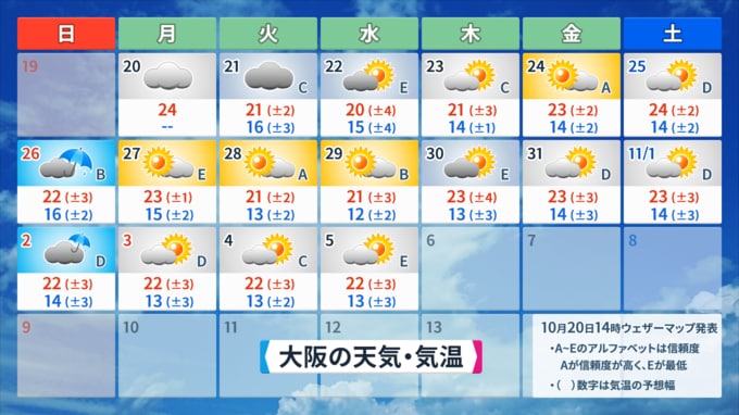 大阪も、昼間の最高気温が20℃位までしか上がらない日もでてきます。