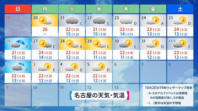 名古屋も最低気温が10℃に迫り、朝晩は上着が手放せません。