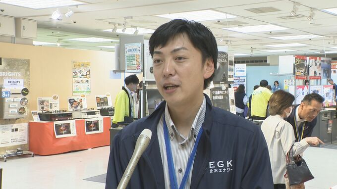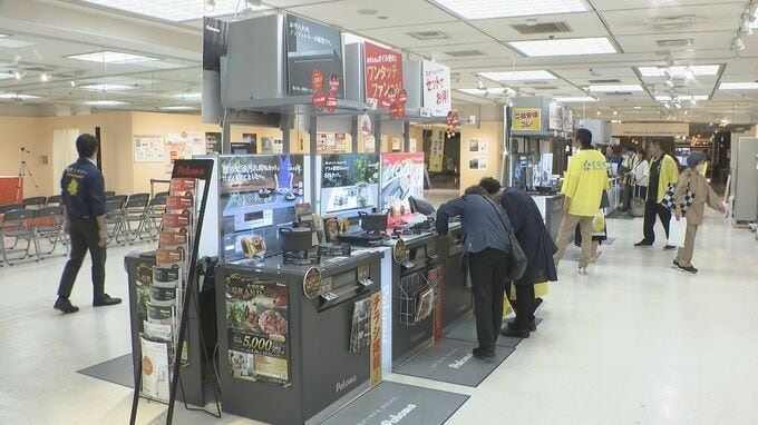 電気代の高騰などからガス器具への関心が高まっているということで、会場を訪れた人たちは熱心に店員から話を聞いていました。