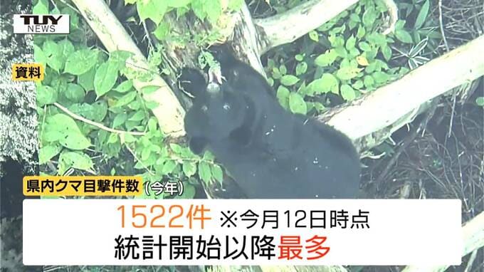 県によりますと、今年県内でクマが目撃された件数は、今月12日時点で1522件に上り、統計をはじめた2003年以降最多の記録を更新し続けています。