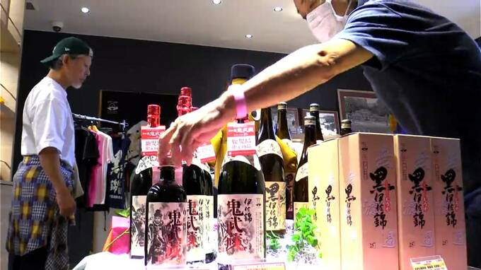 この日は、鹿児島限定で新発売となった「伊佐錦・鬼武蔵」をはじめ9種類の焼酎が販売され、訪れた人は、お土産にと買い求めていました。