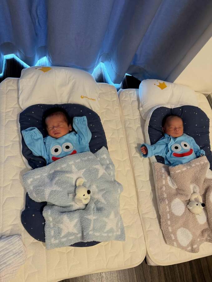 そして「2人すやすや今寝ててありがとう ですが午前中しばらくワンオペなったとき 双子でギャン泣きオーケストラ!」「おむつでもなくミルクでもない 抱っこしたら泣き止むが腕が8本ほしい」「ダブル抱っこしてみたら ひとり泣き止みひとり泣く ふむむ」と記しました。