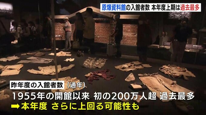 原爆資料館では昨年度、1955年度の開館以来初めて、通年で200万人を超えて過去最多となりましたが、今年度はそれを「さらに上回る可能性もある」ということです。