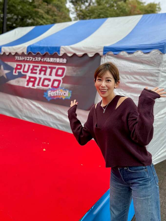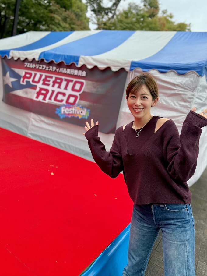 中川安奈さんは、ラジオ番組に出演したことを明かすと「代々木公園で開催中のプエルトリコフェスティバルから 中継させていただきました」と、報告。