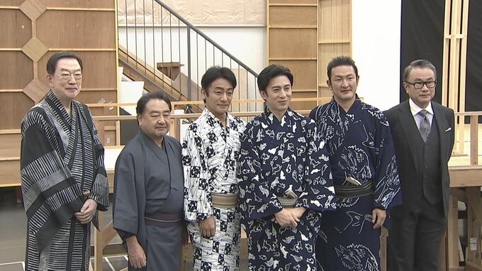 11月2日から東京・歌舞伎座にて上演される、三谷幸喜作・演出の新作歌舞伎、三谷かぶき「歌舞伎絶対続魂(ショウ・マスト・ゴー・オン)~幕を閉めるな~」囲み取材が行われ、演出の三谷幸喜さん、出演する松本幸四郎さん、片岡愛之助さん、中村獅童さん、坂東彌十郎さん、中村鴈治郎さんが登場しました。