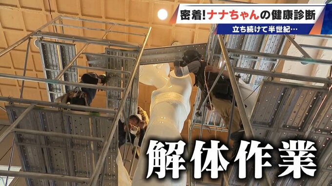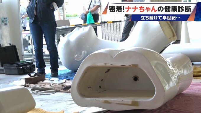 半世紀以上ものあいだ、名古屋駅前に立ち続けてきたナナちゃん。その表面だけでなく、接合部分や内部にも傷や劣化が見つかり、そこには歳月の重みが確かに刻まれていました。