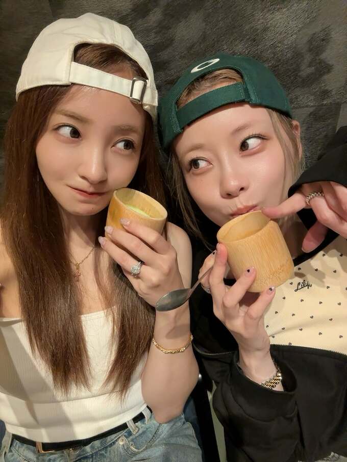 また室内で撮影された写真も公開されており、カップを手に持つ二人の様子も見られます。飲食店でのリラックスした時間を過ごしたようです。