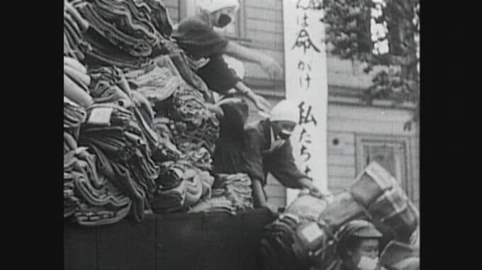 国防婦人会は、満州事変の翌年、1932年に大阪で発足。「国防は台所から」をスローガンに、出征兵士の見送りなどを通じて、主婦たちを戦争協力へと駆りたてた。日中戦争、太平洋戦争と戦線が拡大するに従って会員の数は増え、やがて1000万人規模に膨れ上がった。