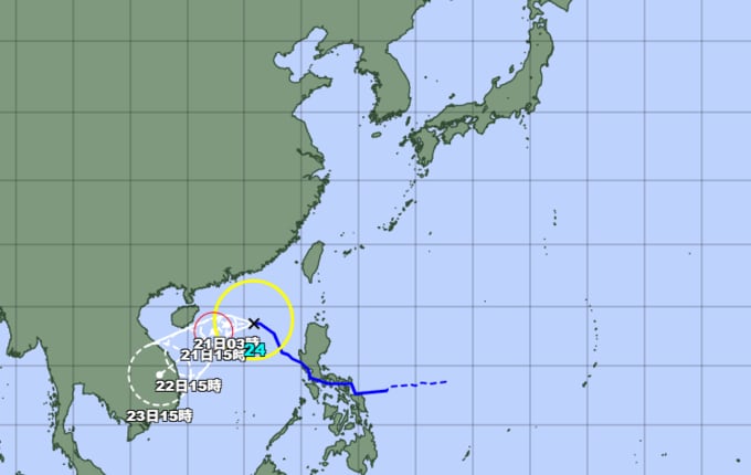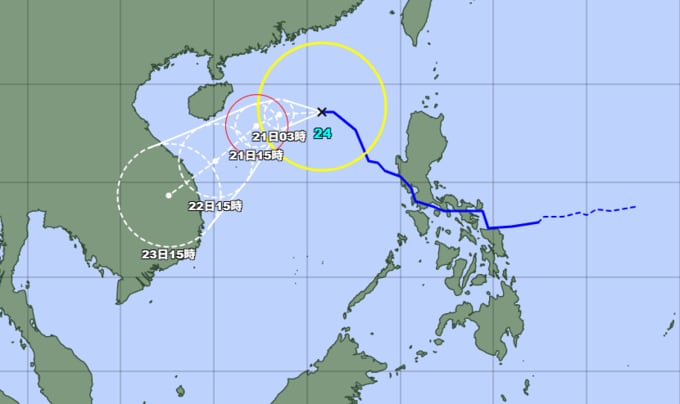 進行方向、速さ 西北西 20 km/h (11 kt)