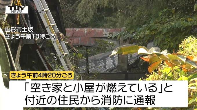 警察によりますときょう午前4時20分ごろ、山形市土坂で「空き家と小屋が燃えている」と付近の住民から消防に通報がありました。
