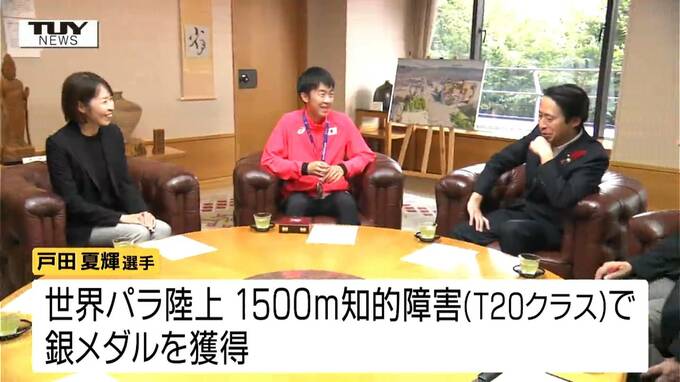 今月インドで行われた世界パラ陸上1500mで銀メダルに輝いた、山形市出身の戸田夏輝選手が、きょう山形市役所を訪れ、大会結果を報告し今後の目標と意気込みを語りました。