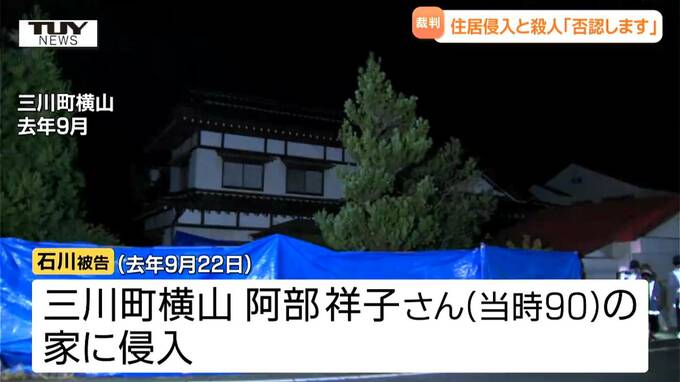 起訴状などによりますと、石川被告は、去年9月22日の未明に三川町横山の阿部祥子さん(当時90)の家に侵入し、阿部さんの頭や胸などを殴ったほか、足で踏みつけたり首を絞めつけたりするなどして殺害した罪に問われています。目的は金品を盗むためだったとされています。