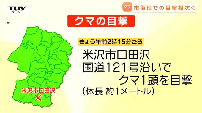 きょう午前2時15分ごろ、米沢市口田沢の国道121号沿いで、クマ1頭が目撃されました。クマは体長およそ1メートルと見られています。
