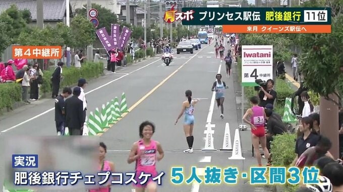 そして4区、ケニア出身のチェプコスケイが会心の走りを見せ、残る2区間でもクイーンズ駅伝出場圏内を守り、11位でフィニッシュ。
