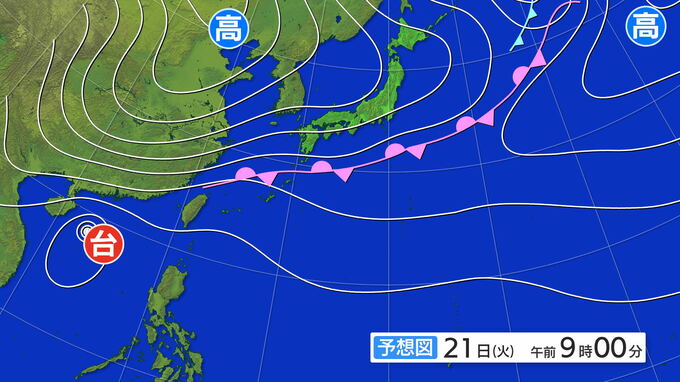 台風24号は、20日午後6時で南シナ海に中心を持ち、今後は西よりに進む見込みです。そのため、日本に直接影響を及ぼすことはなさそうです。
