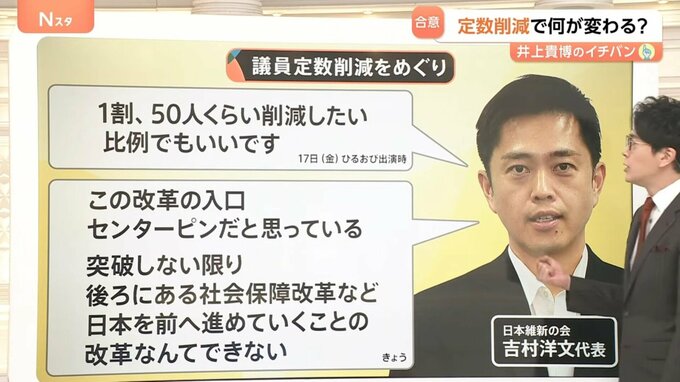 連立をめぐり、日本維新の会 吉村洋文代表がセンターピンだと挙げたのが「議員定数の削減」です。