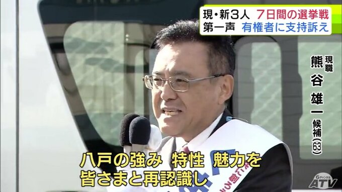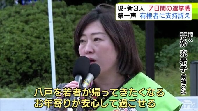 八戸市の市長選挙が告示され、7日間の選挙戦が始まりました。