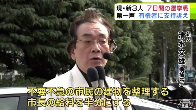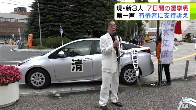任期満了に伴う青森県八戸市の市長選挙が19日に告示され、現職・新人合わせて3人が有権者に支持を訴えました。