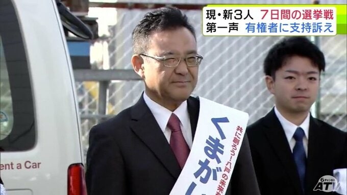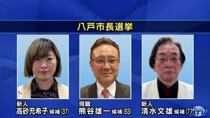 立候補したのは届け出順に、新人で建築デザイナーの高砂充希子 氏(37)、現職で2期目を目指す熊谷雄一 氏(63)、新人で歯科医師の清水文雄 氏(77)の3人です。