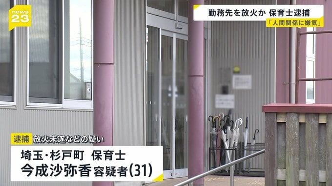 おととい、埼玉県松伏町の保育園で起きた火事。警察はきのう、保育園に放火しようとしたなどとして、この保育園に勤務する保育士・今成沙弥香容疑者(31)を逮捕しました。今成容疑者は、この保育園に10年以上勤め…