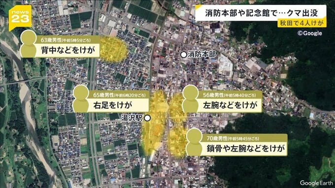 さらに、秋田県湯沢市の湯沢市消防本部でもクマが出没しました。時刻は午前4時すぎ。