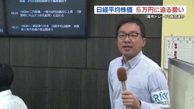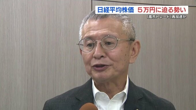 今日の日経平均株価は取引期間中の最高値を更新し、一時、4万9900円台まで上昇しました。この動きに県内の証券会社は…
