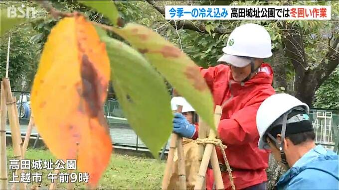 寒気の影響で新潟県内各地は21日、今シーズン一番の冷え込みとなりました。上越市では高田城址公園の『冬囲い作業』が始まり、21日朝の新潟市中央区では、通勤通学の装いからも秋の深まりが感じられます。県内の最…