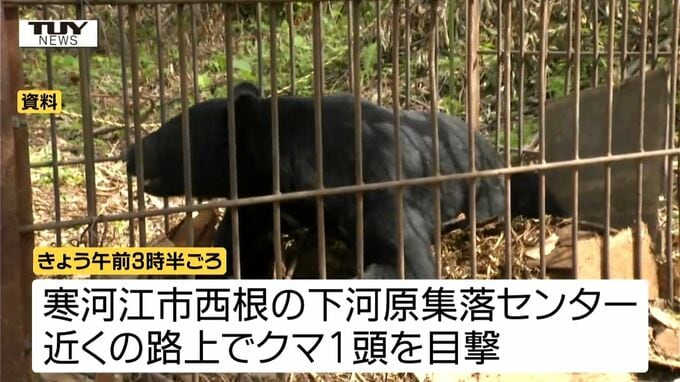 きょう午前3時半ごろ、寒河江市西根にある下河原集落センター近くの路上で、クマ1頭が目撃されました。クマは体長およそ1メートルとみられています。