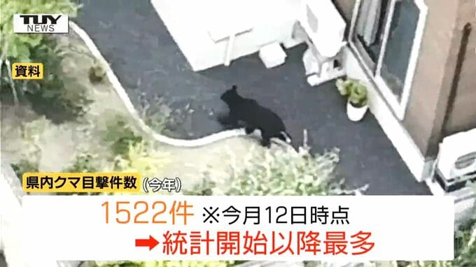 県によりますと、今年県内でクマが目撃された件数は、今月12日時点で1522件に上り、統計をはじめた2003年以降最多の記録を更新し続けています。