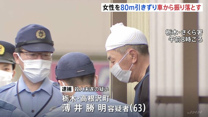 栃木県で先週、車のドアにしがみついた女性をおよそ80メートルにわたって引きずるなどしたとして、63歳の男が殺人未遂の疑いで逮捕されました。栃木県高根沢町の薄井勝明容疑者(63)は今月18日、自宅近くの県道で…