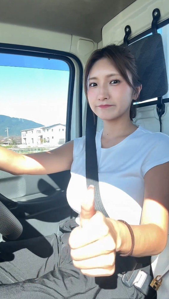 公開された動画には、白いトップス姿の三田さんが軽トラックの運転席に座り、慣れた手つきでマニュアル車を操作する様子が収められています。