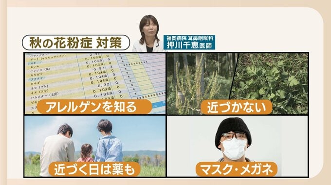 福岡病院の押川医師によると一つは、アレルギー症状を引き起こす原因物質=アレルゲンを「知る」こと。