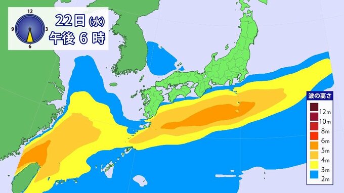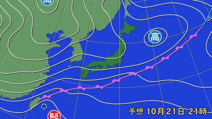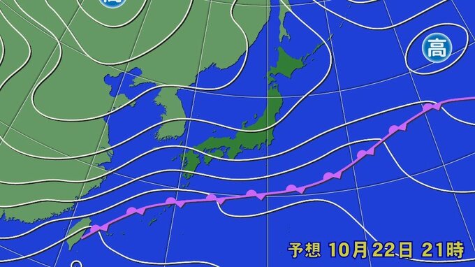 「もう一つの注意点が風と波です。大陸にある高気圧の勢力が強く日本付近に張り出しており、秋雨前線との間で気圧の傾きが大きくなっています」
