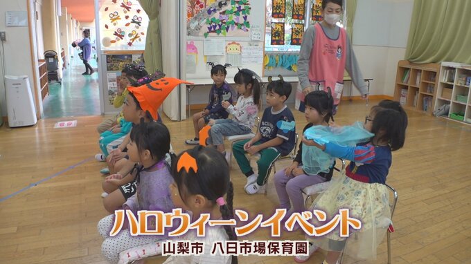 「トリックオアトリート」保育園でハロウィーンイベント お菓子をもらい、ダンスやお絵描き楽しむ 山梨・八日市場保育園 To view this video please enable JavaScript, and consider upgrading to a web browser that supports HTML5 video テレビ山梨 2025年10月21日(火) 21:00 国内 今月31日はハロウィーンです。 保育園児が英語でハロウィーンを楽しむイベントが山梨市で行われました。 園児ら: 「ハッピーハロウィーン!」 ハロウィーンイベントを行ったのは山梨市の公立の保育園です。