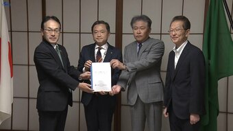20日に盛岡国際交流協会の鎌田英樹理事長を訪ねたのは、国際交流人材の育成を目的にカナダ・ビクトリア市に派遣される盛岡市内の中学生10人です。