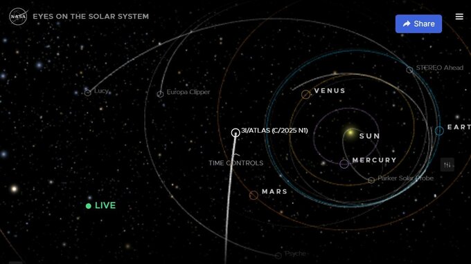 「3I/ATLAS」が太陽系の中で最接近したのは火星です。2025年10月1日から7日にかけて、3,000万キロの距離に最接近しました。