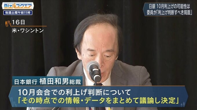 一方、日銀の植田総裁は10月末の会合での利上げ判断については「その時点での情報・データをまとめて議論し決定する」と話し、会合に向け情報収集にあたる考えを示している。